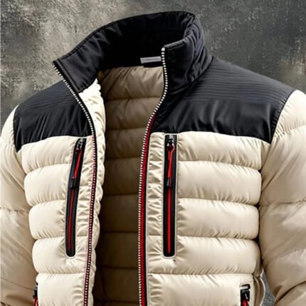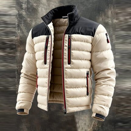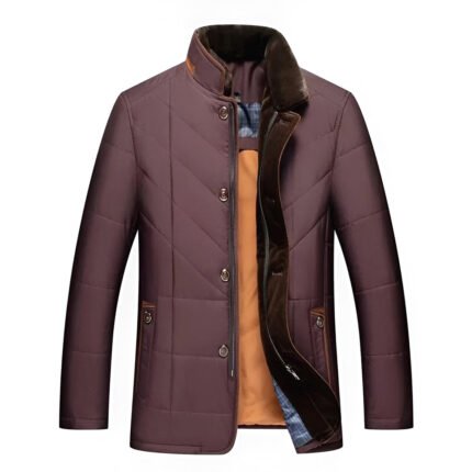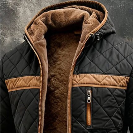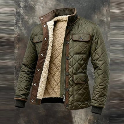Men’s Retro Quilted Fleece-Lined Warm Zip-Up Jacket