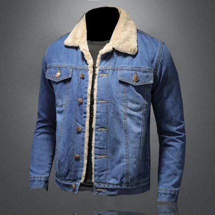 Men’s Retro Warm Washed Denim Outdoor Jacket