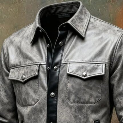 Men’S Vintage Soft Leather Patchwork Contrast Color Long Sleeve Shirt