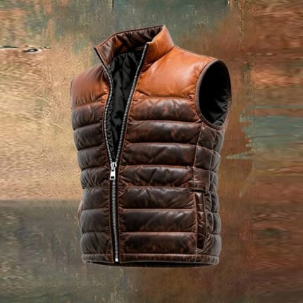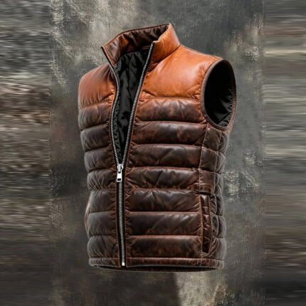 Men’s Retro Warm Soft Leather Outdoor Vest Jacket