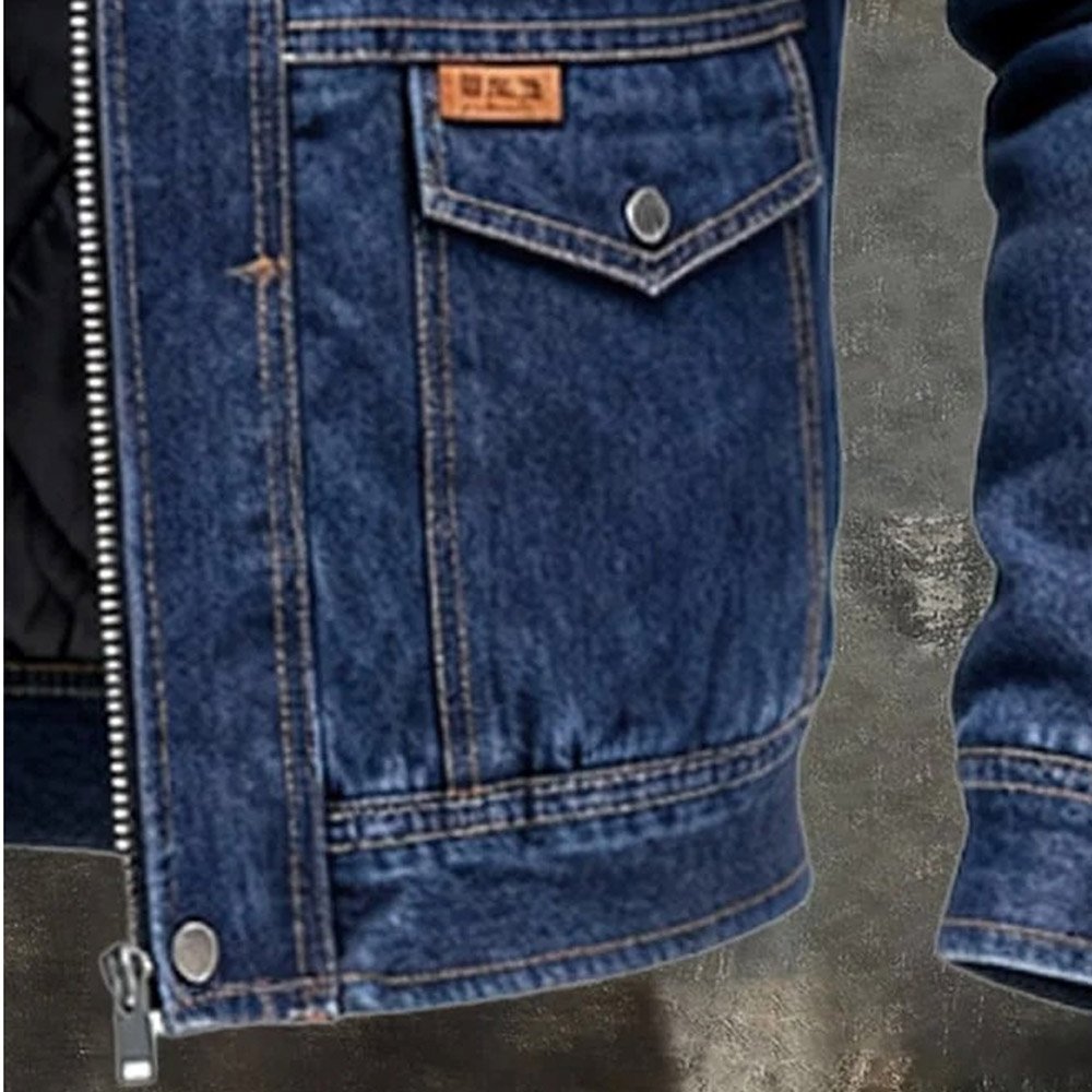 Men’s Retro Distressed Denim Fleece-Lined Warm Multi-Pocket Outdoor Jacket Coat
