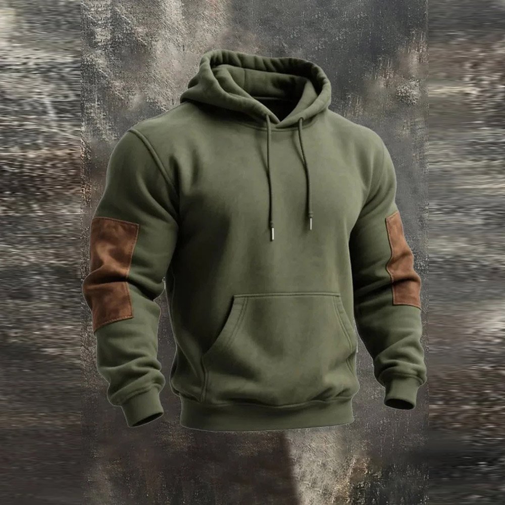 Men’s Retro Stitching Contrast Color Hooded Casual Sweatshirt Suit12454