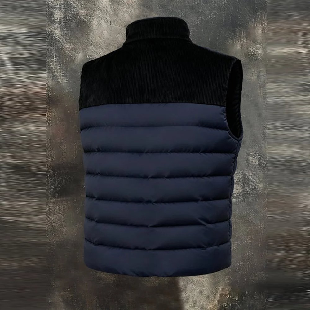 Men’s Retro Warm Corduroy Color Block Outdoor Cotton Vest Jacket