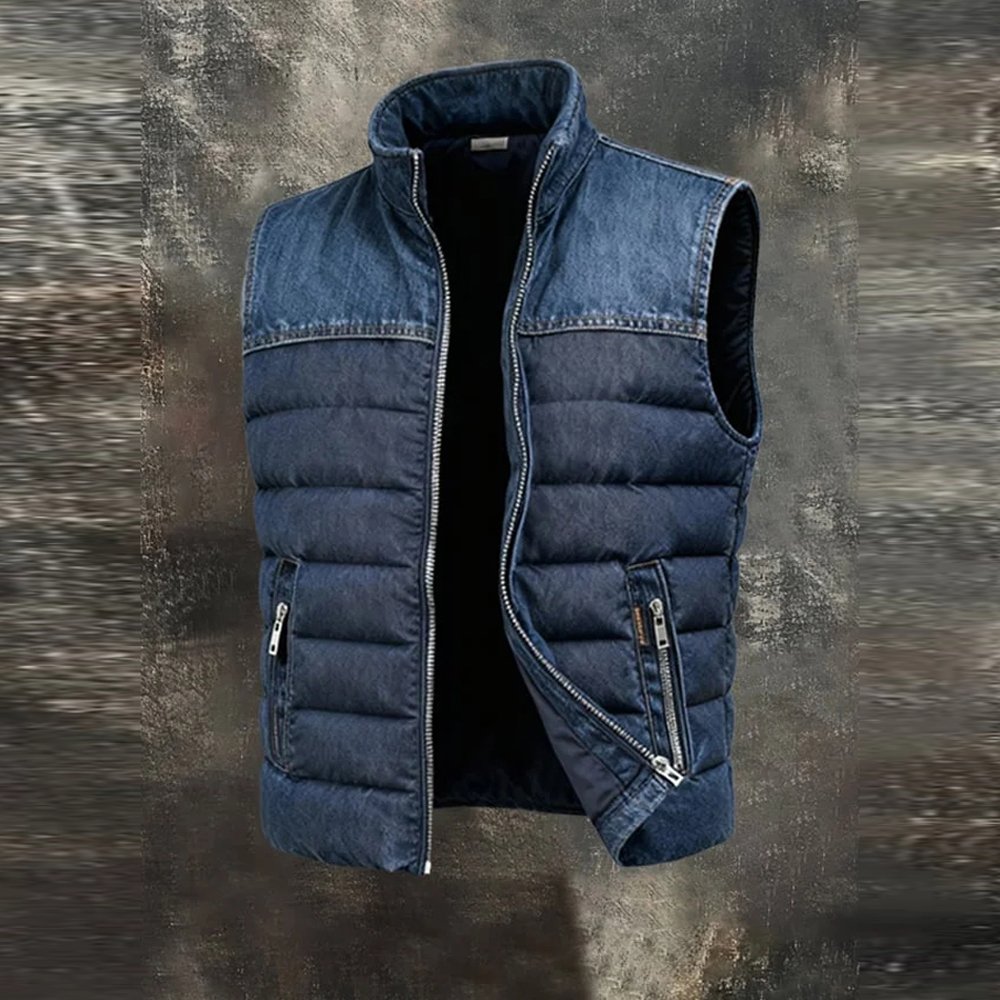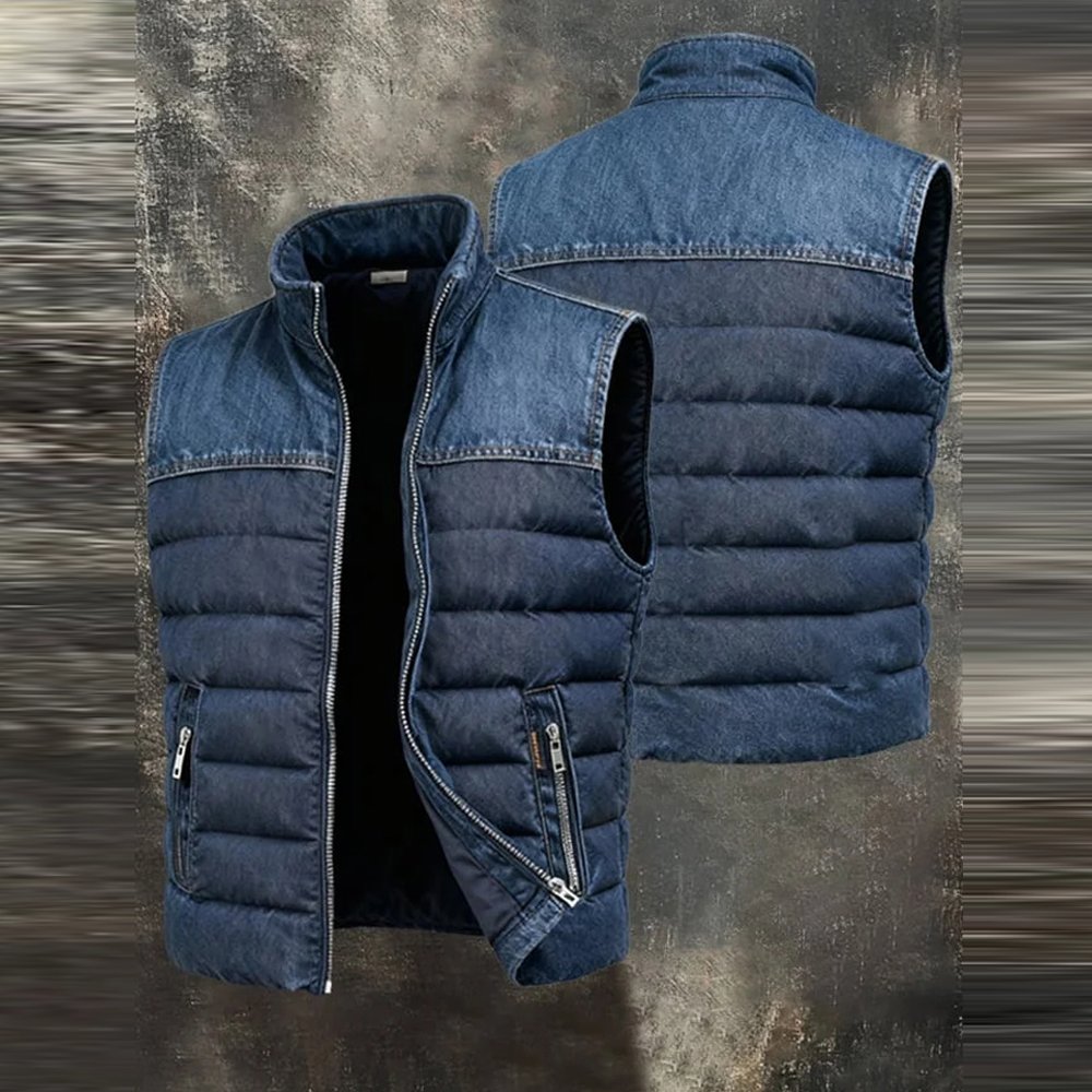 Men’s Retro Warm Denim Outdoor Cotton Vest Jacket