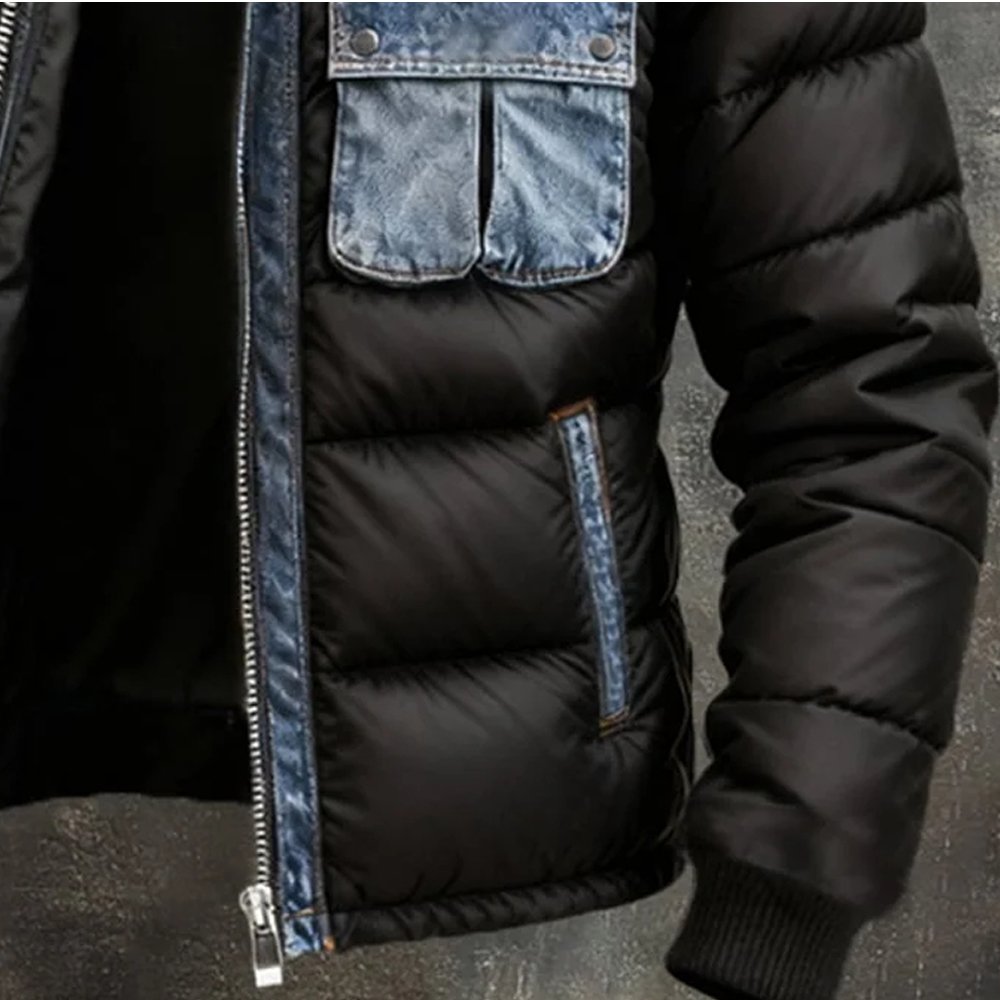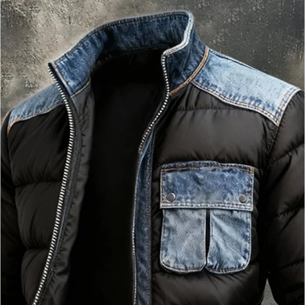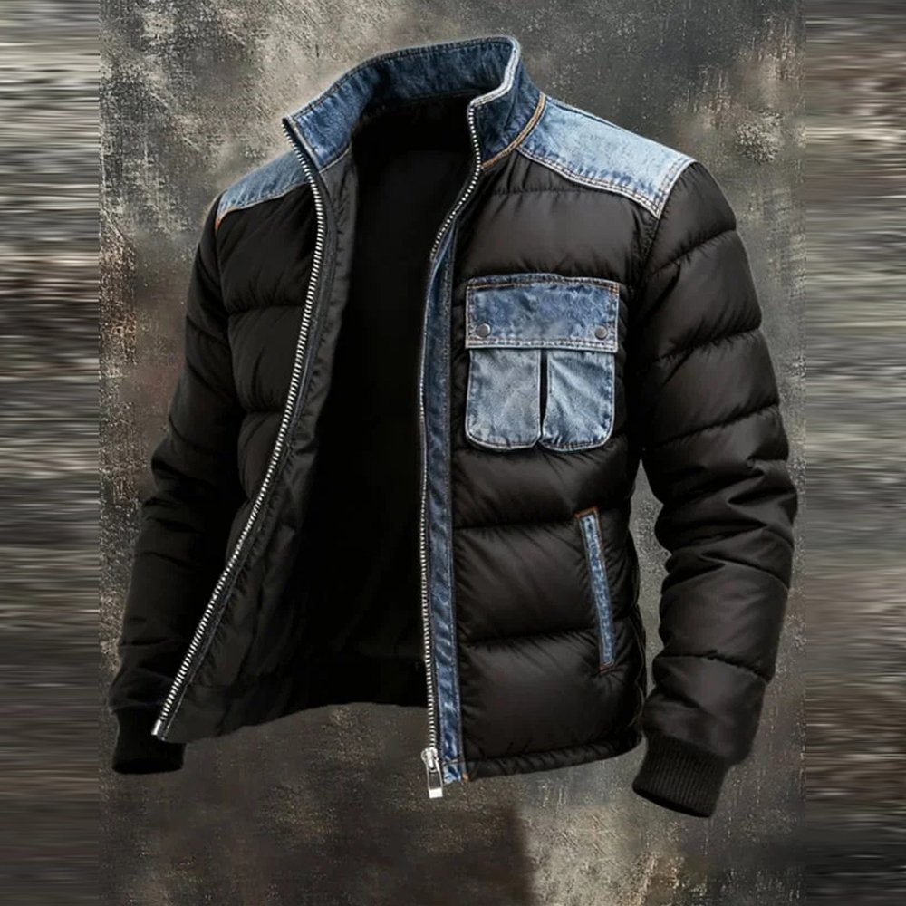 Men’S Retro Warm Patchwork Denim Outdoor Jacket Cotton-Padded Jacket