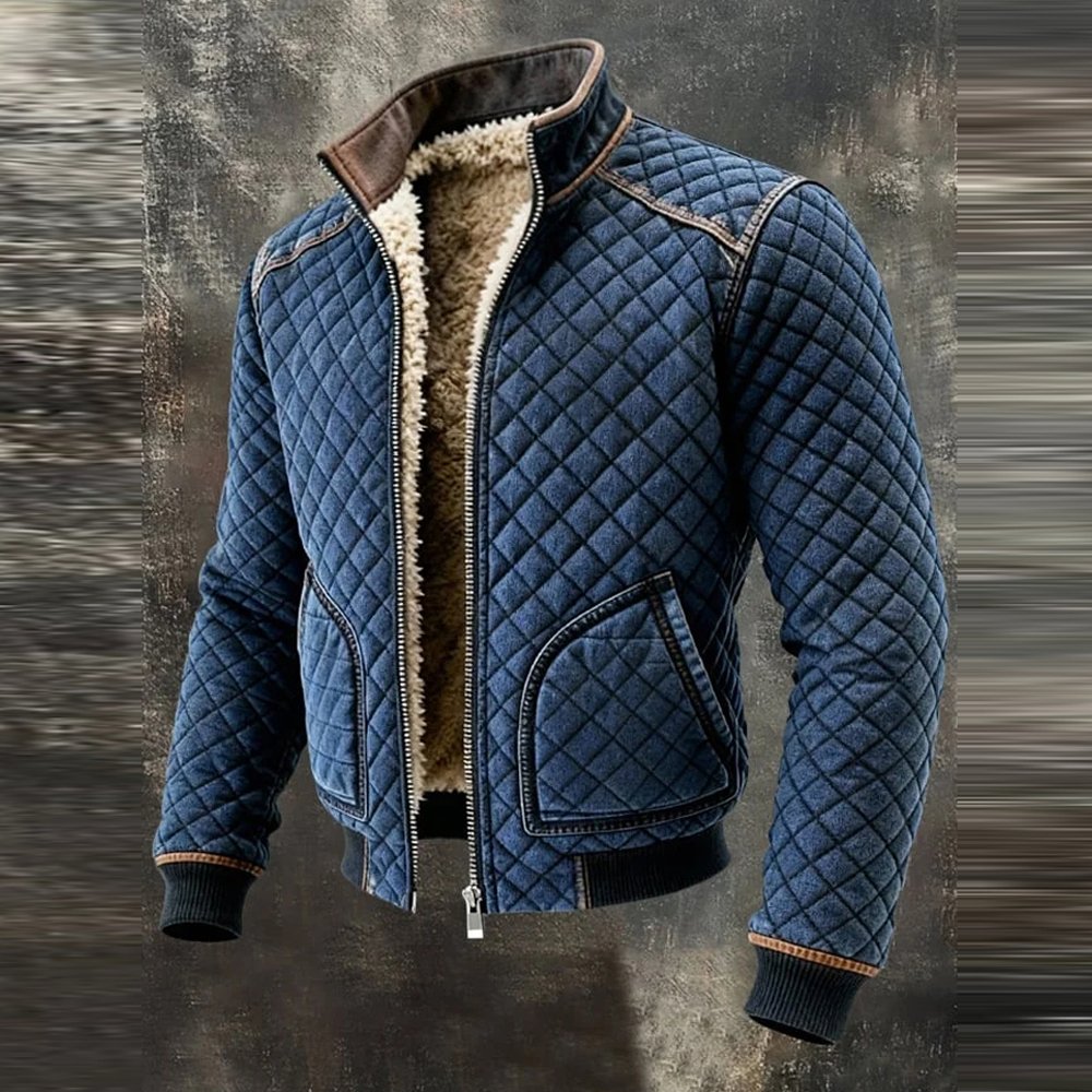 Men’s Retro Quilted Fleece-Lined Warm Zip-Up Jacket