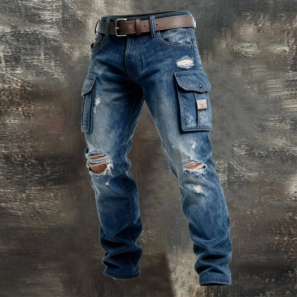Men’s Retro Multifunctional Pocket Denim Work Pants