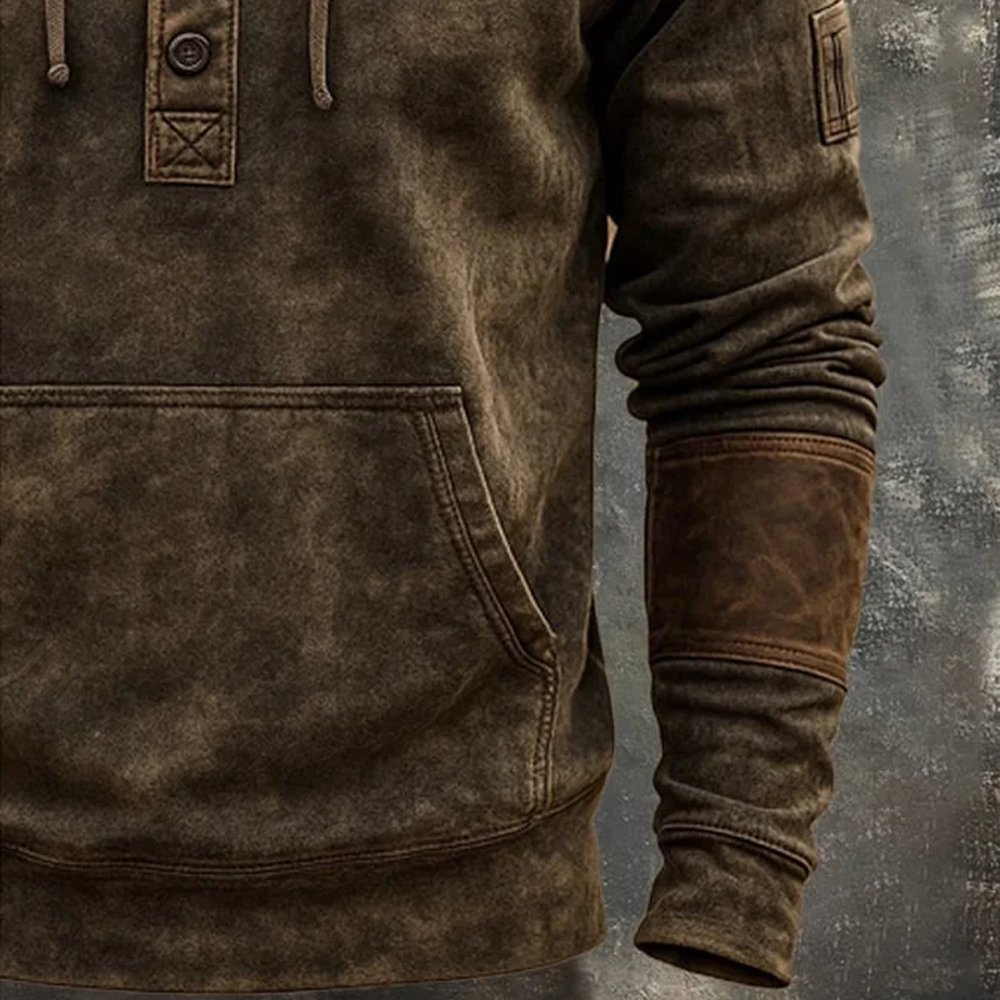 Men’s Vintage Distressed Leather Panel Hooded Sweatshirt